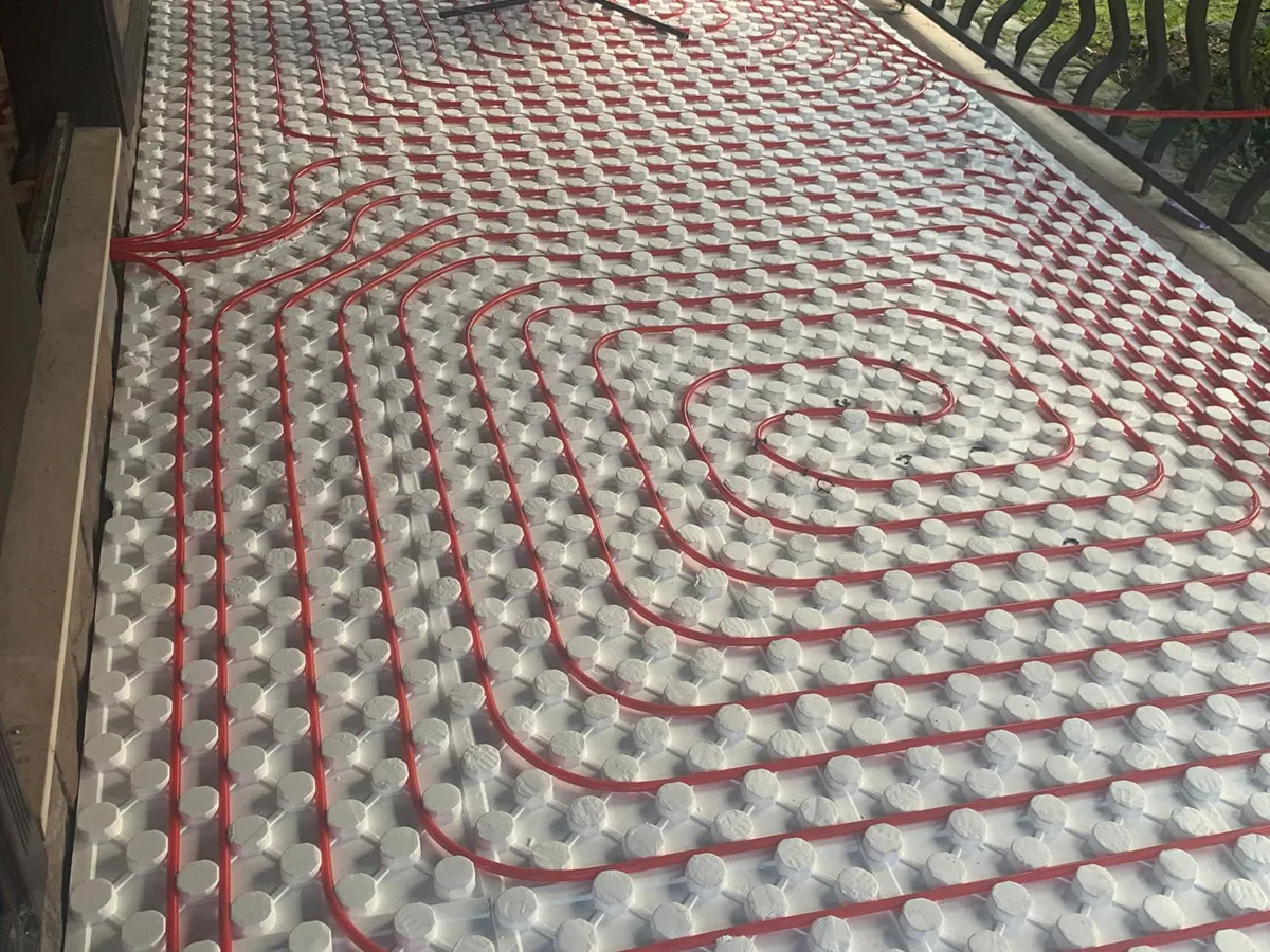Özel tasarım su boruları, zeminin altına profesyonelce yerleştirilir.